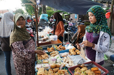 di Jalan Gus Dur mulai depan Stadion dan GOR Merdeka, setiap sore sebelum buka puasa para penjual ini menggelar